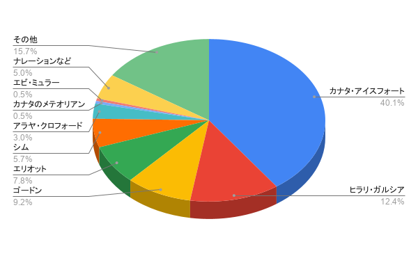 | キャラ | 台詞数 | 割合 |